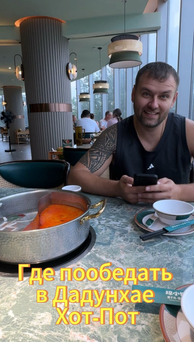 "В сентябре 2024 года мы остановились в отеле Pearl River Garden (Дадунхай). В день прилета был тайфун и большинство кафе и ресторанов были закрыты, поэтому мы решили пообедать в ресторане при отеле (находится справа от ресепшен) - по типу hot pot - "горячая кастрюля" Концепция горячей кастрюли заключается в том, что гости могут самостоятельно выбирать ингредиенты для своего блюда, которые затем варятся в кипящей бульоне прямо на столе. Меню впечатляет своим многообразием — от свежих морепродуктов и различных видов мяса до экзотических овощей и ароматных специй. Меню (естественно) только на китайском - но онлайн переводчик (по фото) решает проблему. Особенно понравился сервис: персонал был дружелюбным и готовым помочь в выборе ингредиентов и соусов, что особенно важно для новичков в этом типе кухни. Все официанты одеты в фирменную одежду -соломенные шляпы и гавайские рубашки - сразу чувствуешь что ты в тропиках. В это заведение мы ходили 2 раза за отпуск, и каждый раз пробовали р