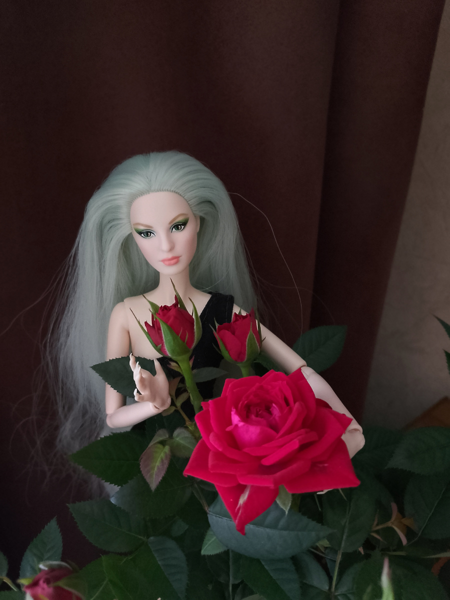 Вообще не собиралась покупать живые цветы. Скорее всего, меня в ближайшем будущем ждёт ещё не один переезд, ну куда я с горшками? Я четыре раза переезжала с цветами, намучилась уже. Сейчас ни одного цветочка не держу. Но в воскресенье зашла в "Пятëрочку" за "немолоком", просто по пути было. А там розы всех оттенков... И недорого... Соблазнилась, в общем. Надо добавить, что с розами я вообще обращаться не умею. Растила прежде только бегонии и декабристы. Не знаю, сможет ли розочка у меня выжить, в интернете почитала информацию, как её растить, но не очень усвоила; ну теперь уж на удачу... А пока роза цветёт, пофотографировала с ней Адалинду. Всем спасибо за просмотр. Если кто-то знает, как растить розы из "Пятëрочки", пишите в комментариях, буду очень благодарна!