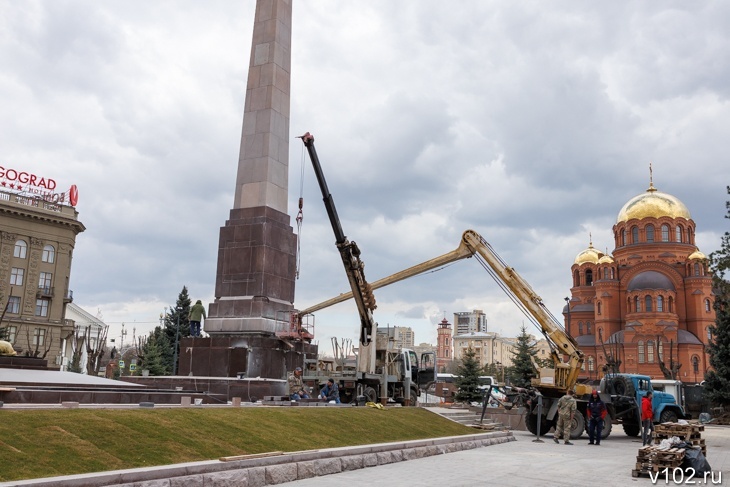 Масштабнее всего в последние дни закипели работы на площади Павших Борцов. Здесь несколько месяцев назад началось обновление сквера, а также мемориала защитникам Царицына и Сталинграда. После размеренного и где-то неспешного темпа, взятого рабочими в зимний период, сейчас обновление развернулось с новой силой.