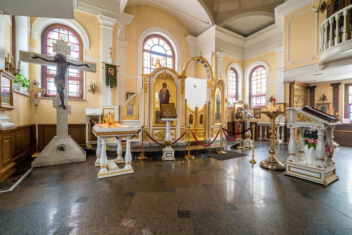 Проект Храма всех Святых в земле Русской Просиявших для нас был как и все остальные очень важным, однако у этого храма очень необычная история, которая началась задолго до его строительства. С 1931 по 1961 год на месте храма находился 1-й Кирпично-пемзовый завод. В годы войны он работал как крематорий, в котором было кремировано около 500 тыс. ленинградцев, умерших от голода и обстрелов, а также воинов, погибших при защите города. Пепел высыпался в ближайший глиняный карьер. 27 января 2009 года, в день 65-летия снятия блокады Ленинграда на этом священном месте было решено построить храм-памятник. Строительство началось в январе 2010 года и заняло всего 4 месяца. Проект новой церкви в традициях петербургской храмовой архитектуры, органично соединён со строгой классической стилистикой Парка Победы и Павильоном скорби, расположенном на берегу Адмиралтейского пруда. При создании наших изделий для данного проекта мы учли внешний вид храма и историю этого места. В комплекс работ вошли ⬇ + Ин
