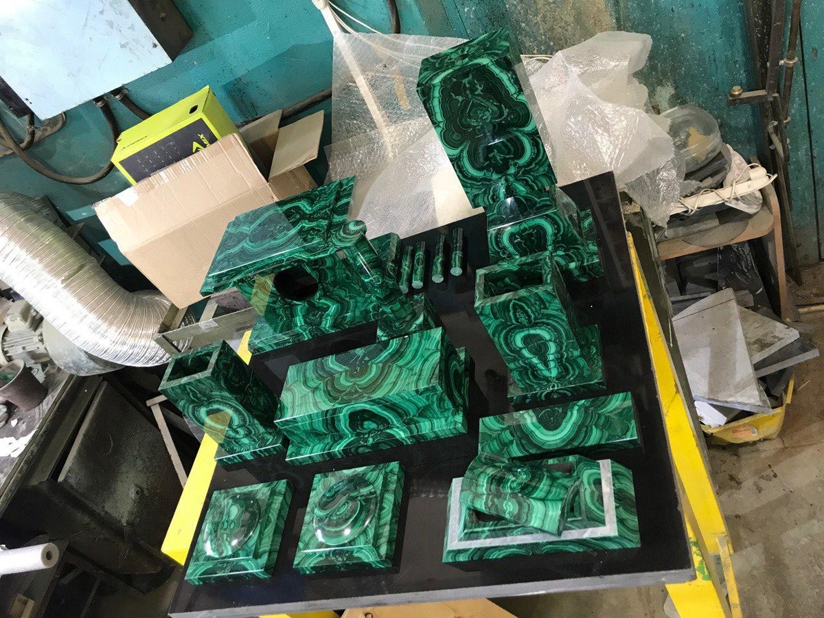 Когда мы создаём изделия из малахита, то чаще всего не знаем, как покупатели ими будут пользоваться. Мы не видим какое место они занимают в доме или офисе, однако есть случаи, когда мы можем увидеть результат своей работы во всей красе — это когда изделия приобретают видные люди, вроде первых лиц страны. Однажды к нам поступил заказ на изготовление малахитовых изделий в уникальном дизайне для президентской резиденции Туркменистана. У нас ушло около месяца на изготовление, после чего мы отправили готовые изделия в Ашхабад, надежно упаковав посылку. Какого было наше удивление, когда через пару месяцев мы увидели фотографии президента Туркменистана Гурбангулы Бердымухамедова в своем кабинете за рабочим столом, на котором стояли те самые изделия из малахита — письменный набор, статуэтка лошади на малахитовой подставке, лампа и другие предметы, выполненные из малахита и бронзы нашими мастерами. Очень приятно видеть результат своей работы во всей красе. После этого мы начали получать запросы