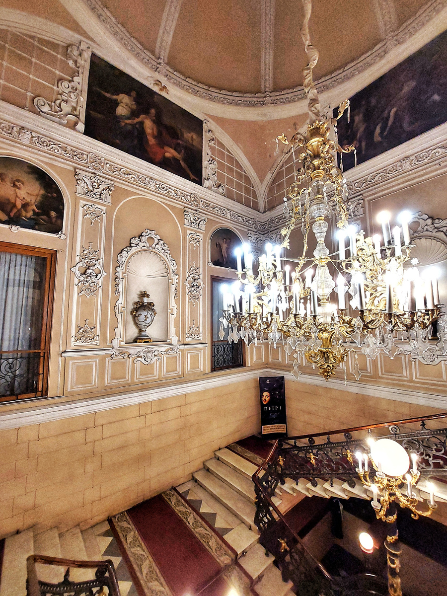 В Петербурге можно, попав на концерт, еще и оказаться в старинном особняке. Ведь здесь каждое здание это историческое наследие. Если вы решите посетить театр музыкальной комедии, советую вам приехать заранее до спектакля, здесь есть на что полюбоваться. Это будет двойное удовольствие - и от музыки и от архитектуры. Театр музыкальной комедии находится в бывшем особняке артистки Марии Потоцкой (одна из хозяек). Сразу же на входе вы увидите копии картин Луки Джордано "Похищение Европы" и "Триумф Галатеи". В парадные гостиные поднимаемся по роскошной парадной лестнице. На мраморной композиции Венеры с амуром есть монограмма "НН" - это монограмма великого князя Николая Николаевича. Император купил скульптуру в Италии и подарил её своему внуку великому князю Николая Николаевичу. А тот подарил особняк и эту скульптуру своей подруге актрисе Александринского театра Марии Потоцкой. Хоть Потоцкая и считалась владелицей особняка, но в справочнике «Весь Санкт-Петербург» на 1909 год хозяином ук