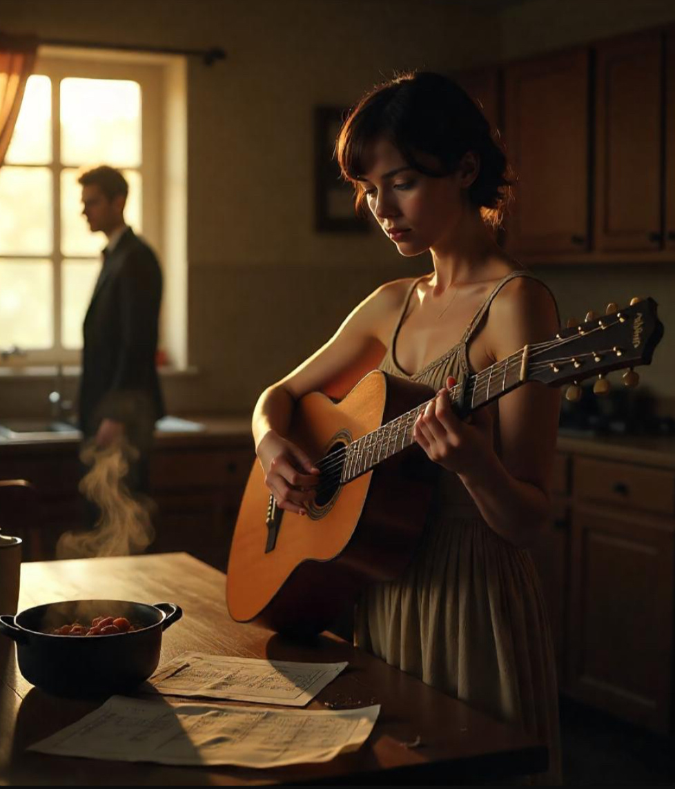 Лена почувствовала, как горло сдавило. Она молча сняла фартук, бросила его на стул и ушла в комнату. Андрей что-то бурчал про "нечего психовать", но она уже не слышала. Закрыв дверь, она села на кровать, подтянула к себе старую гитару и провела пальцами по струнам. Звук вышел глухой, как её мысли. Ей было тридцать пять, и впервые она спросила себя: а что останется, если убрать это "мы"?
