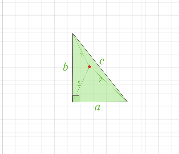 +13. ★★☆ Может ли расстояние от некоторой точки до вершины прямого угла треугольника быть равно 5, а до двух других его вершин - 1 и 2 ? Доказательство от противного. Допустим, может. Ответ: не может