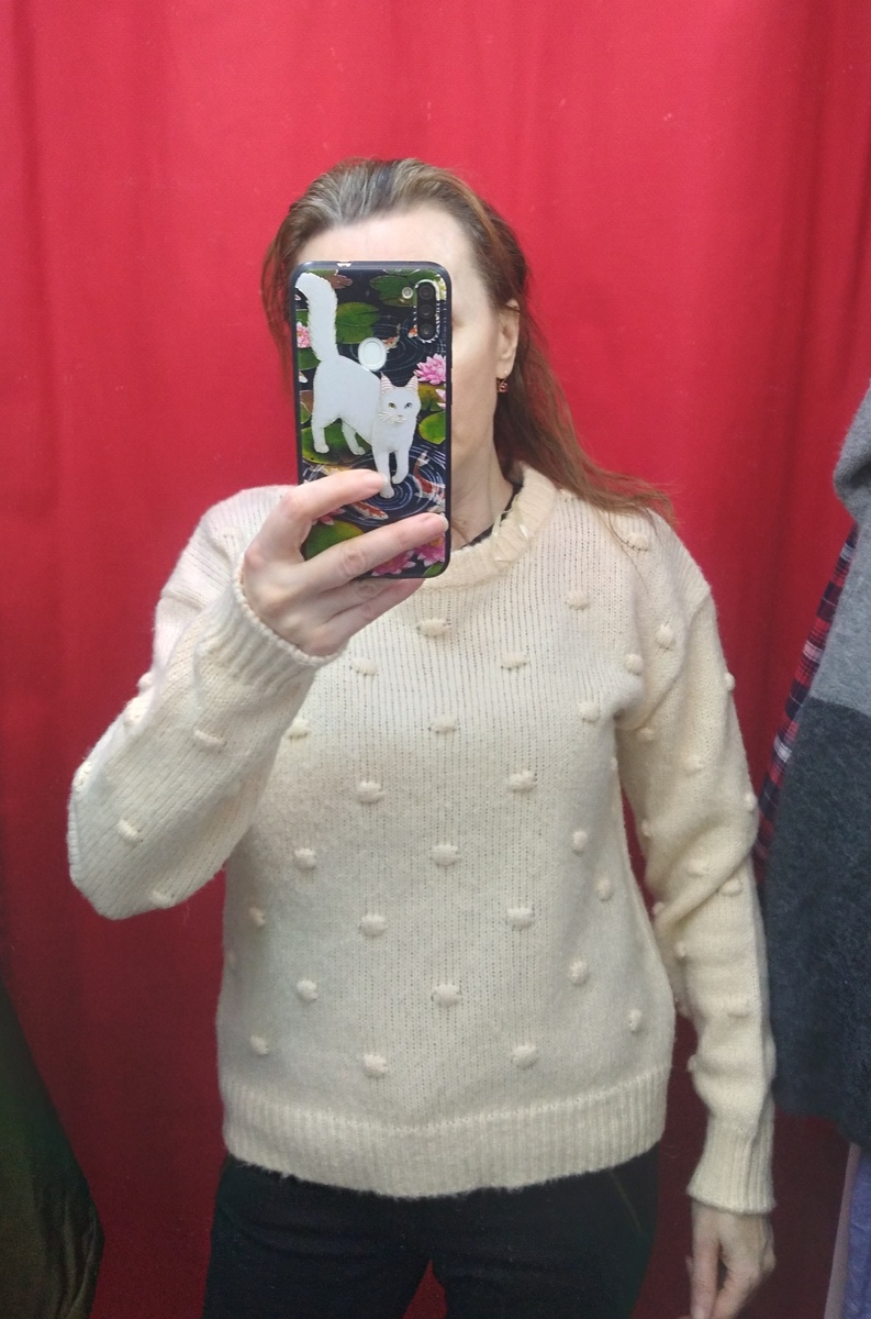 Джемпер светлого кремового оттенка, очень мягкий трикотаж в горошек.