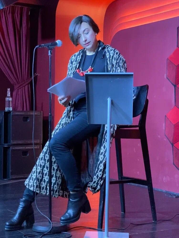Читать «на людях» я хожу для себя, конечно. Чтобы выбраться из тоннеля внутреннего существования, увидеть людей, пообниматься, послушать звон бокалов, звуки фортепиано, гул голосов и отдельные реплики. При этом стараюсь, чтобы лирический стендап хорошо звучал и был даже полезен для зрителя. Стало очевидно, что уединение - это питательно для творчества, а общение офлайн питательно для поддержания жизни. 24 марта (это завтра) жду всех, кто меня читает, знает или никогда не видел в кафе «Пушкарев». Начинаем в 20.00, собираемся с 19-ти (многие после работы, им надо перекусить). Место очень уютное. Не то, что на фото - там, в «Рыбе моей» витали вайбы стриптиз-клуба с его красными бархатными занавесами. Тут заведение творческое, даже «намоленное», вон Кортнев недавно выступал. А завтра будет еще два очень симпатичных чтеца и автора. Билеты продаем потому что звук, свет и прочее пока никто не дарит, к сожалению) Если у кого есть мои книги, подпишу и подарю открытку с рисунками Анны Горвиц из