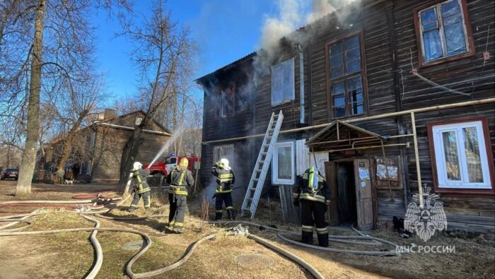 Сегодня в 09:06 в МЧС России поступило сообщение о пожаре в Коврове, на улице Киркижа, дом 11. Пламя охватило квартиру и чердачное помещение двухэтажного жилого дома, общая площадь возгорания составила 100 квадратных метров. Своевременно прибывшие на место происшествия огнеборцы применили спасательные устройства и успешно эвакуировали двоих мужчин из охваченного огнем здания. В ликвидации пожара участвовали 17 сотрудников МЧС и 4 единицы техники. Предварительная причина возникновения огня – неосторожное обращение с огнем. Надо сказать, что этот дом регулярно появляется в пожарных сводках. За последнее время дом горел в июне 2020 года и июле 2021 года, где в пожаре погибла женщина 1951 года рождения. Дом построили в 1941 году. Андрей Надеждин
