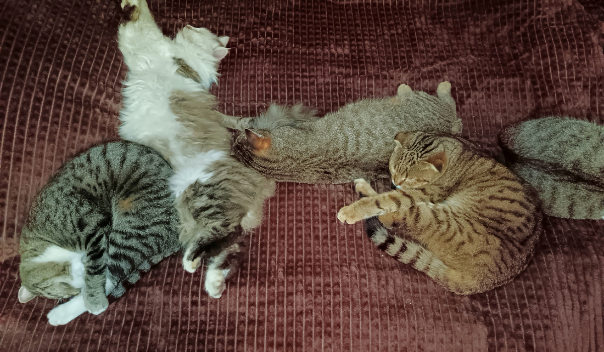 Всем привет! Что-то холодно для почти конца марта, вам не кажется? Ну какой такой минус с утра, уже весны хочется и солнца, а по прогнозу дождь на всю неделю. Так что предлагаю начать понедельник с котиков. У меня то выбора по-любому нет, а вам в ленту сейчас будет немножко моих). Про похудение сегодня не будет, это скучно 😄 А знаете ли вы, как живется, когда в доме шесть хвостов? Не скучно 😀. Не в том смысле, что исключительно интересно и весело, нет. Именно - не скучно. Например, чтобы лечь спать, надо сначала отвоевать свою постель. Ну вот нравится им спать именно на моей кровати, причем с недавних пор всем пяти. Как думаете, кто из этих шерстяных категорически не любит расческу? Конечно тот, кому эта расческа больше всех нужна. И не только с щеткой к нему не подходи, тут недавно попыталась ему репей из хвоста достать, так была побита лапой, хорошо хоть без когтей. Максимум фамильярности, которую можно с ним позволить - это вежливый почес за ушком. И в кого такой уродился, как