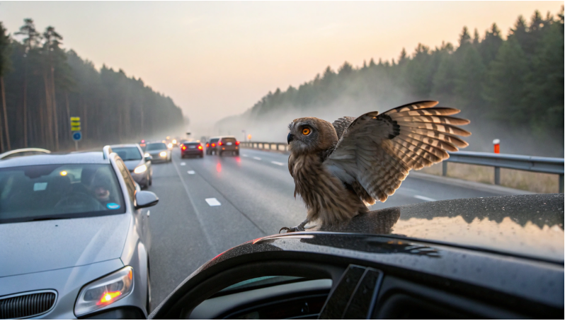 Когда небольшая рыжеватая сова начала стремительно атаковать проезжающие автомобили на загруженной магистрали, водители тормозили в недоумении. Большинство решили, что птица просто лишилась рассудка. Крики совы пронзали влажный утренний воздух, а её крылья мелькали перед лобовыми стёклами машин, заставляя нервничать даже самых опытных водителей.