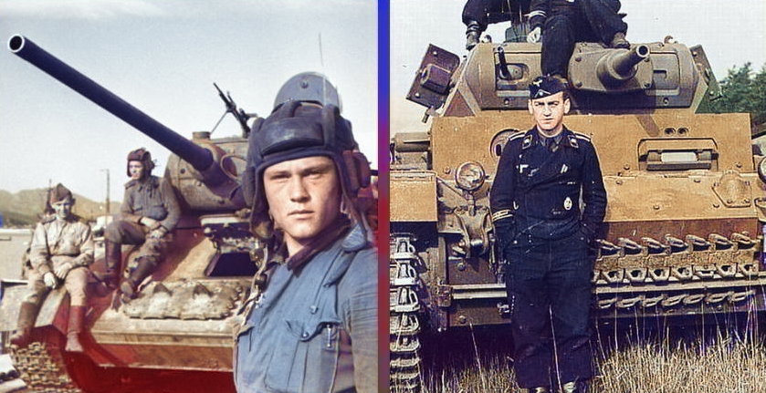 В второй период войны гитлеровские панцеры получили уже защитный камуфляжный окрас тёмно-жёлтый окрас - Dunkelgelb. Советские же танки оставались зеленого цвета - куда более, подходящего для сражений в лесах да полях.