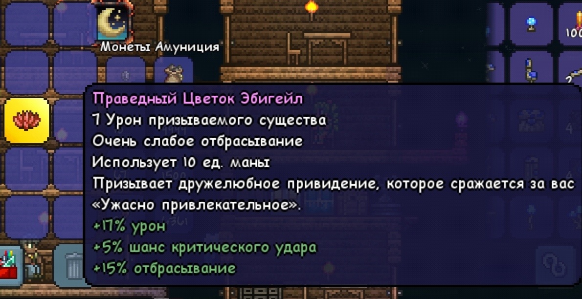 Всем привет. С вами я - Кайто. Сегодня я бы хотел сделать небольшую статью-гайд, по такой замечательной игре, как Террария. Сегодня речь пойдëт о предмете, который очень полезен в начальной стадии игры, а получить его крайне легко. Цветок Эбигейл. Его добавили в игру во время коллаборации с Don't Starve Этот предмет растëт рядом с надгробиями, так что получить его можно без особых проблем. Его отличительной особенностью является то, что он работает, как Дракон Звëздной Пыли. Тоесть если призвать несколько раз то вместо появления нескольких его копий, он повысит свои характеристики. Выглядит как призрак с цветком на голове. Надеюсь, что данная пробная статья-гайд была вам полезна. Всем удачи и до новых встреч!