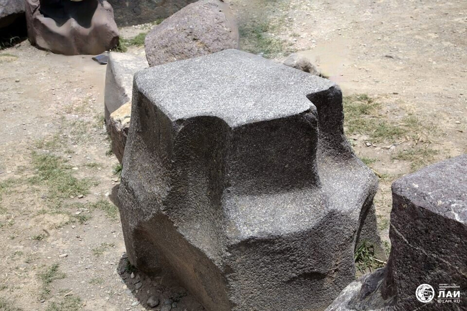 И сколько же здесь углов и закруглений? Историки утверждают, что малограмотным аборигенам так было проще подгонять камни плотно друг к другу - чёткими радиальными выборками, чем заниматься обтёсыванием простых прямоугольных форм... Впрочем, необычный приём выборки породы замечен не только в этом месте. Странные следы выборки можно разглядеть на обработанных камнях в форме инкского креста чакана, как будто они были сделаны чем-то механическим. Эти следы совершенно не похожи на следы вырубки простым ручным инструментом. Создается впечатление, что подобные следы невозможно оставить простым обстукиванием, однако их вполне мог оставить барабан фрезы - это хорошо видно по ширине инструмента и закруглённой выемке в углах. Именно поэтому на этом блоке выемка в форме Чаканы (инкский крест) имеет ступеньки такой ширины. Некоторые слои выборки утоплены чуть глубже "дна" выемки. При осмотре этих выемок сбоку - это хорошо заметно. А в одном месте фрезерный барабан остановился "на полдороге" и получ