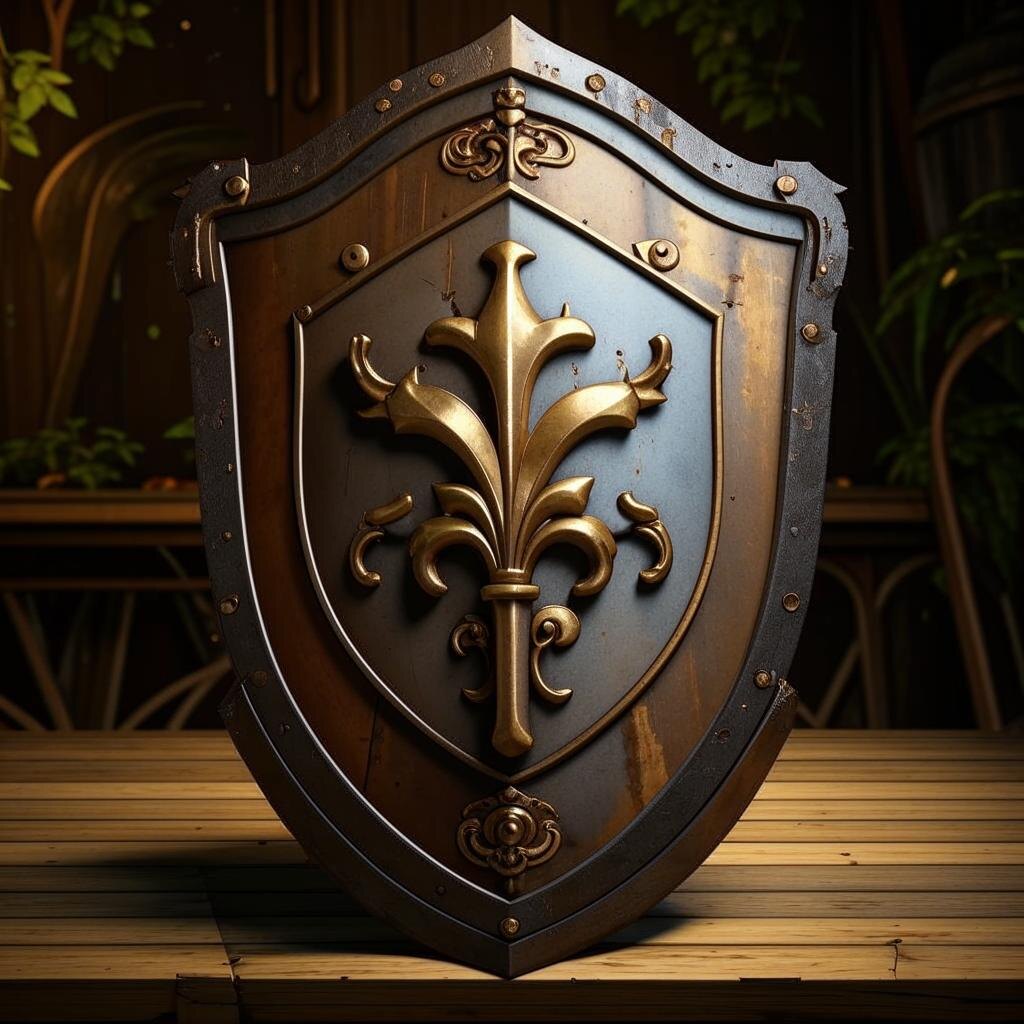 Там же было дано изображение этого артефакта, состоящего из двух предметов - меча (который чуть не украл Никита) и щита в виде белой лилии.