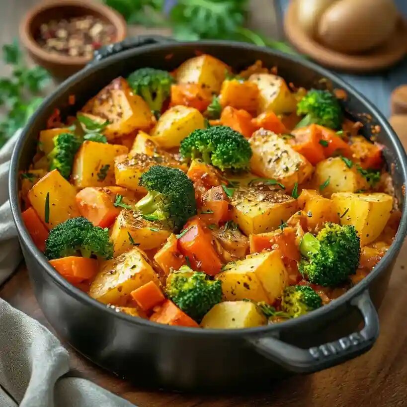 Эта постная запеканка с овощами - прекрасный вариант для тех, кто соблюдает пост или просто хочет насладиться легким и полезным блюдом! Она получается очень сочной, ароматной и насыщенной витаминами. Начнем с подготовки ингредиентов. Картофель (750 г) очистите и нарежьте тонкими кружочками. Брокколи (350 г) разберите на небольшие соцветия. Морковь (385 г) очистите и нарежьте тонкими кружочками. Лук репчатый (200 г) очистите и нарежьте полукольцами. В большой миске соедините все овощи: картофель, брокколи, морковь и лук. Добавьте чесночный порошок (1 ч.л.) и итальянские травы (1 ч.л.). Посолите и поперчите по вкусу. Тщательно перемешайте все овощи, чтобы специи равномерно распределились. Возьмите форму для запекания и смажьте ее растительным маслом. Выложите овощи в форму слоями, чередуя картофель, брокколи, морковь и лук. Каждый слой немного прижимайте. Накройте форму с овощами фольгой и поставьте в разогретую до 180 градусов духовку на 45 минут. Затем снимите фольгу и запекайте еще 15