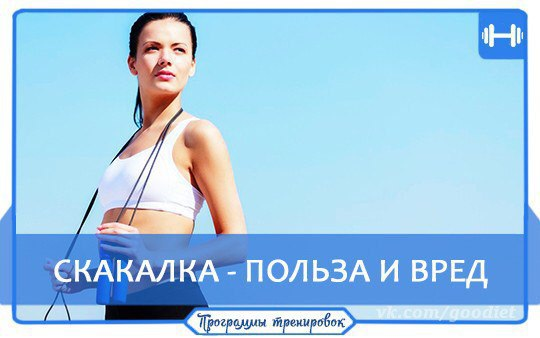 - ПОЛЬЗА: ➕ 1. Прыжки на скакалке прорабатывают множество мышц, которые обычно не нагружены. Когда попрыгаешь 15 минут без перерыва, то на утро даже у людей которые регулярно занимаются спортом, будут болеть мышцы. ➕ 2. Занятия со скакалкой, что очень важно укрепляют сердце и сосуды. Это отличная кардиотренировка для людей всех возрастов. ➕ 3. Скакалка развивает стойкость и выносливость. Занятия со скакалкой помогут «поставить «дыхание. Если мучает одышка, то тренировки на скакалке действительно вам помогут. ➕ 4. Скакалка, что очень важно для женщин, поможет убрать целлюлит. Когда мы прыгаем, укрепляются мышцы ягодиц и бедер. Упражнения на скакалке это встряска проблемных зон, как массаж с эффектом лимфодренажа. ➕ 5. Еще одна польза от скакалки — это похудение. Прыжки сжигают большое количество энергии за короткое время. Час занятии сжигает 700 калорий. Это чуть меньше того когда вы бегаете. - ВРЕД: ➕ 1. Людям с ожирением 1 и 2 степени, с больным сердцем и варикозным расширение вен уси