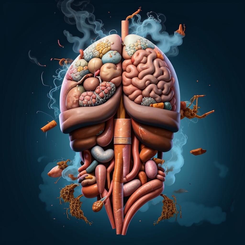 Курение — одна из наиболее распространенных вредных привычек, оказывающих разрушительное воздействие на здоровье человека. Несмотря на многочисленные предупреждения врачей и кампании против табакокурения, миллионы людей продолжают курить, подвергая себя серьезным рискам. Давайте рассмотрим основные аспекты вреда курения на организм. 1.Влияние на дыхательную систему Курение оказывает прямое негативное влияние на легкие и бронхи. Табачный дым содержит тысячи химических веществ, многие из которых являются токсичными и канцерогенными. Основные последствия курения для дыхательной системы включают: - Хронический бронхит: Курение вызывает воспаление дыхательных путей, что приводит к постоянному кашлю и образованию мокроты. - Эмфизема легких: Это заболевание характеризуется разрушением альвеол (мелких воздушных мешочков в легких), что затрудняет дыхание и снижает уровень кислорода в крови. - Рак легких: Курение значительно увеличивает риск развития рака легких. Более 80% случаев заболевания