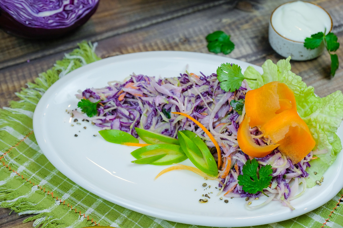 Постный салат с капустой, морковью и яблоком