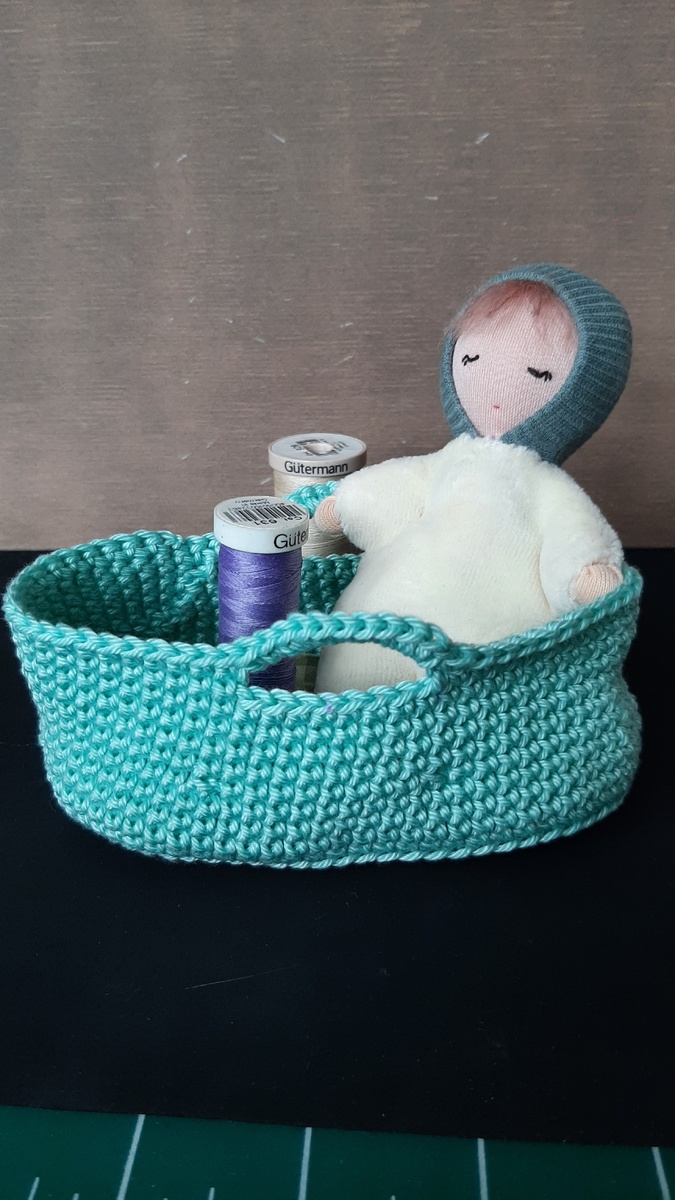 Ещё одна готовая работа- Ляля в колыбельке. Куколка сшита в рамках марафона #татаклуб. Автор мк Наталья Лебедева. Для работы я использовала: Трикотаж для кукол (бежево-розовый)- голова куклы, Хлопковый велюр - тело куклы,