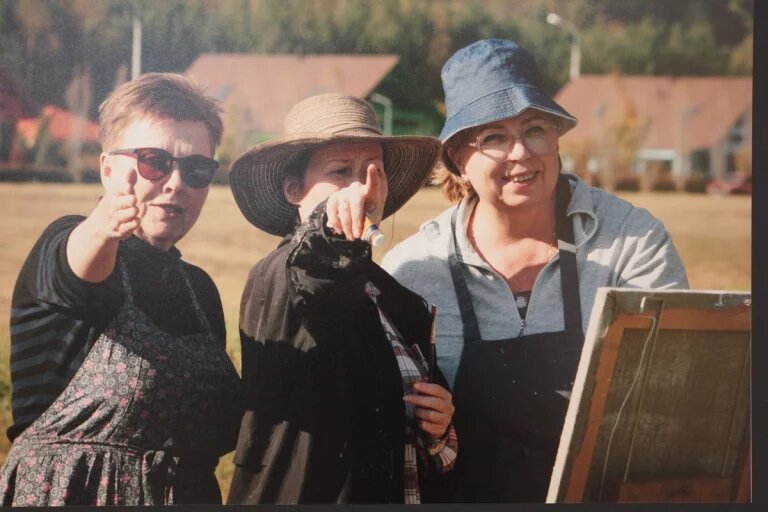Осенью калужские художники ездили на пленэр в Юхнов. И не просто рисовали живописные окрестности, но писали моделей в аутентичных народных костюмах Калужской губернии из личной коллекции Алексея Кузнецова. Что из этого вышло, можно сейчас увидеть в Доме музыки на выставке «На холсте времени. Бархатный плэнер». Сразу идет ассоциация с «бархатным сезоном». И, действительно, пленэр состоялся в красивые октябрьские дни. Художники в Юхнове выстраивают перспективу.Фото Валерия Харченко. Николай Котик «В поле. Русский костюм» кукла, сделанная Наталией Моисеенко и Михаилом Силаевым. Очень личное - Это важный для меня проект, очень личный и непростой, - рассказала на открытии выставки заведующая галереей Дома музыки Наталья ГОЛОВАТЮК. - Юхнов – это город моего детства, мое место силы. Мы с младшей сестрой выросли на окраине Юхнова, любили гулять там, где заканчивался город: поле, рядом лес. И у меня рождались стихи, мечты, планы, цели. У Юхнова непростая история. Во время войны его сожгли дотла