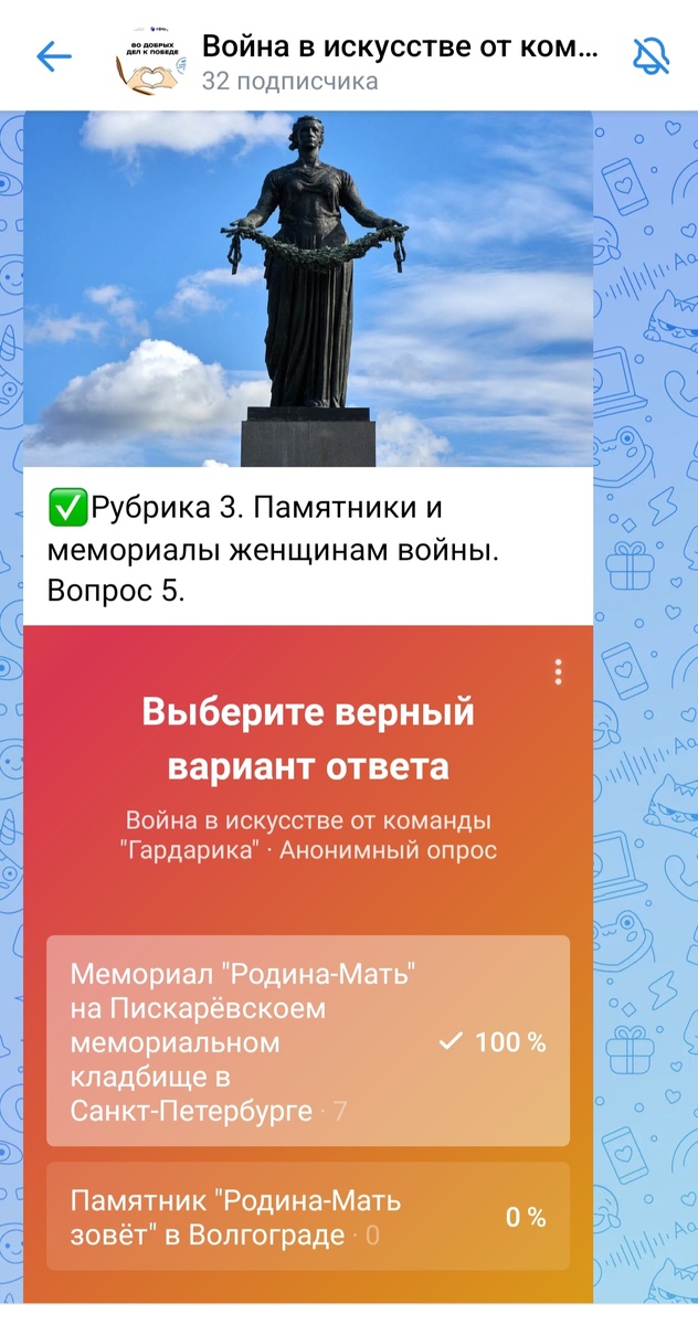 Кураторы команды "Гардарика" Анастасия Романовна и Наталья Алексеевна провели онлайн-викторину в канале команды "Гардарика" в Сферуме! Онлайн-викторина была посвящена теме "Подвиг женщины в Великой Отечественной войне"