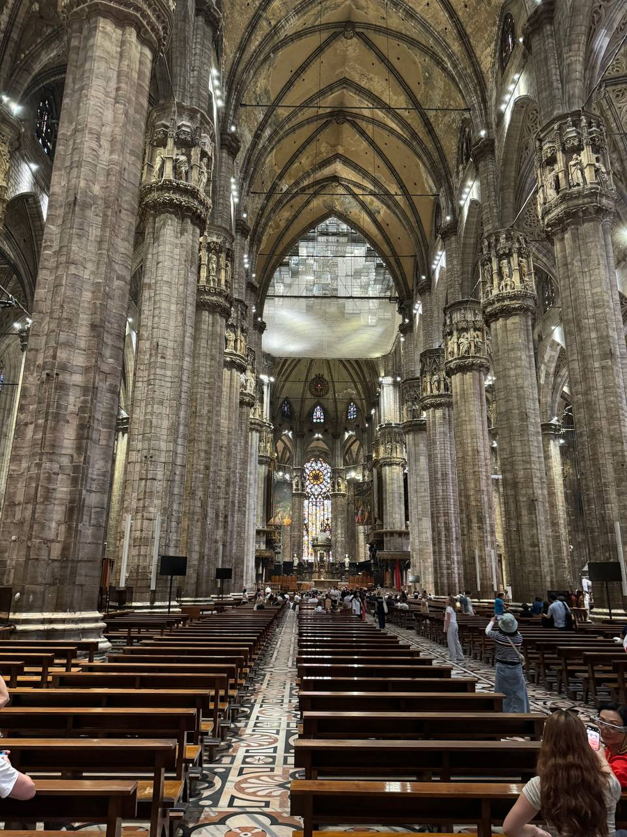 Миланский собор — это настоящая сокровищница искусства и истории. Его мозаики, некоторые из которых существуют уже более полувека, поражают воображение своими размерами и красотой. Каждая деталь, каждый цвет создаёт уникальную атмосферу, которая завораживает посетителей. По всему собору из белого мрамора вырезаны статуи и фигуры: святые, известные личности средневековья и мифические персонажи. Эти произведения искусства не только украшают интерьер, но и рассказывают истории, которые пронизывают всю историю человечества. На входе в собор стоит статуя святого Варфоломея, изображённая с содранной кожей. Этот поразительный образец анатомии человека настолько совершенен, что точность передачи скульптором в середине XVI века внутреннего устройства человека вызывает восхищение. Кроме того, в соборе хранится один из трёх гвоздей, которыми распяли Христа. Каждый год, 14 сентября, в праздник Воздвижения Честного Креста Господня, гвоздь спускают вниз с помощью специального приспособления — ниво