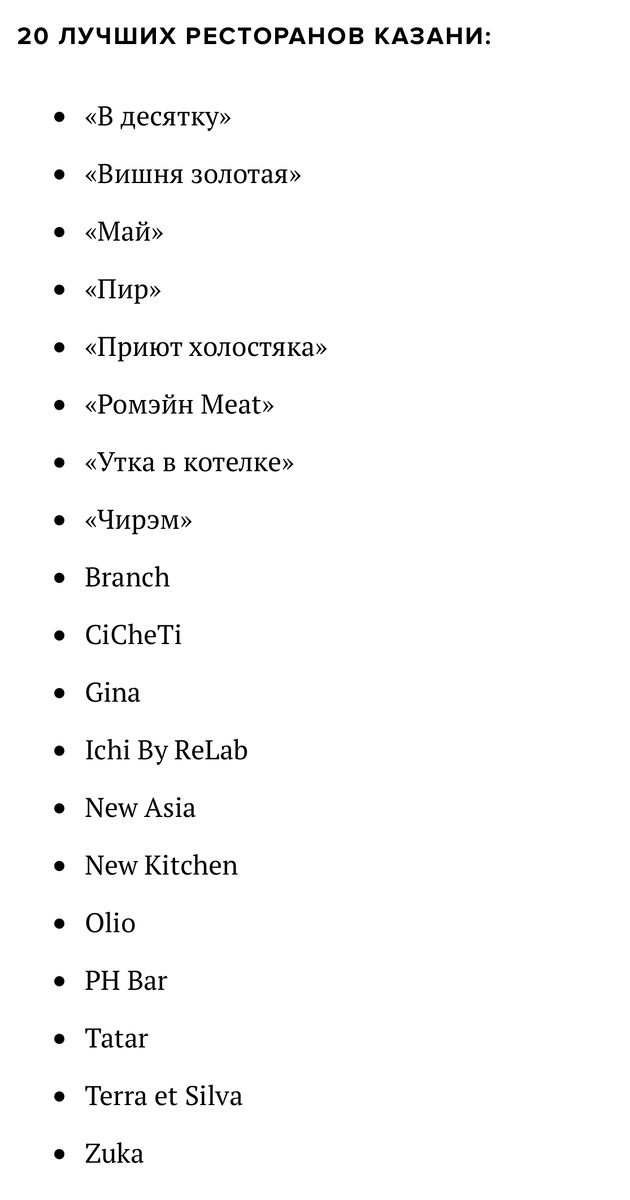 Вот они, наши герои и наша гордость: Список составлен не просто так, а в три этапа: 1) сперва, вродь как, некая такая особая, непостижимо ловкая нейросеть обработала свыше 2000 (двух тысяч) точек общепита на «Яндекс.Картах» в рамках Казани, отбирая лучшие на основе оценок, частоты посещаемости и чего-то ещё подобного; 2) получилось 200 (двести) с небольшим кандидатов, о них уже опрашивали: сперва каких-то «гастроэкспертов», что бы это ни значило; 3) после знающих толк в гастрите - обычных людёв: гостей, посетителей, завсегдатаев. Понятно, что среди «экспертов» ни одного официанта, устроителям рейтингов стабильно не хватает мозгов опрашивать тех, кто действительно разбирается, уже на этом основании можно считать результаты недостоверными, но мякотка впереди. А вот и начало мякотки. Занявший первое место ресторан «В десятку» - не только самый молодой из этой двадцатки, но и вообще в Казани, они работают меньше года. У занявшего первое место ресторана «В десятку» на «Яндекс.Картах» оцен