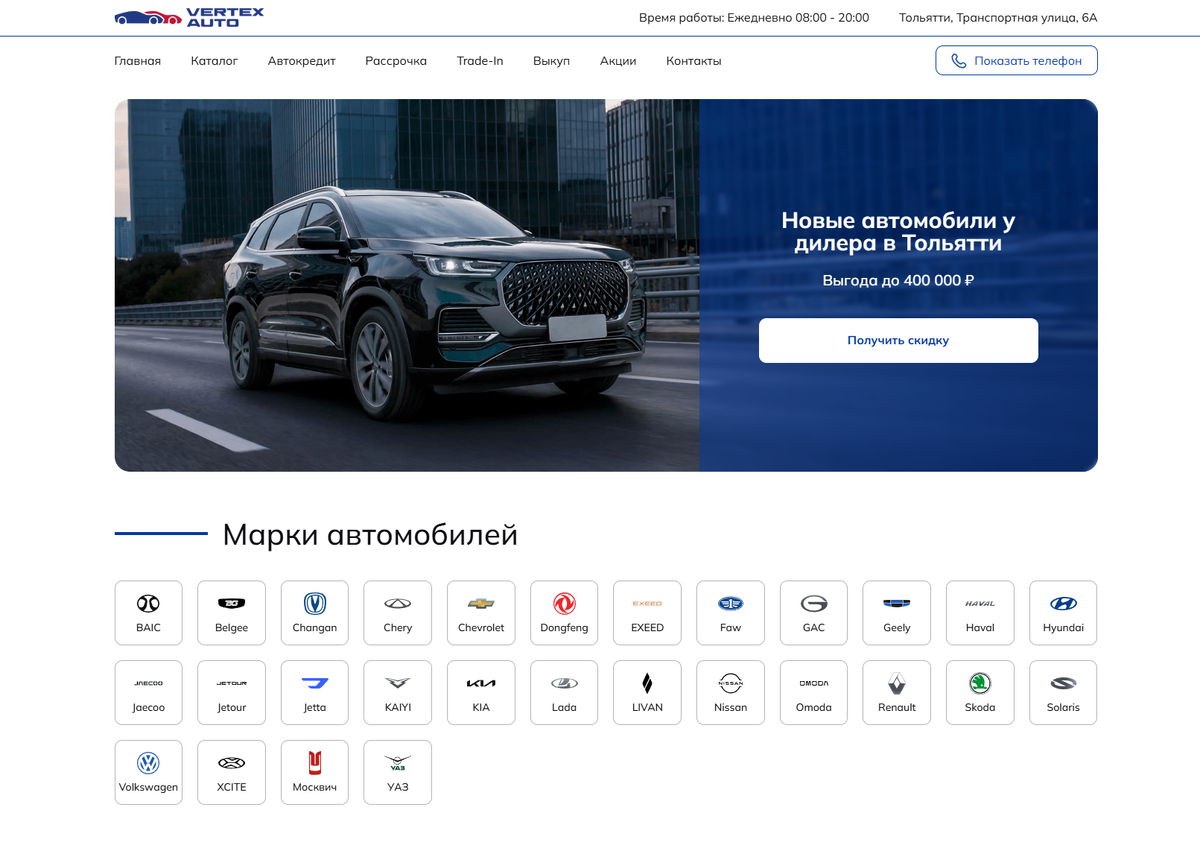 Сайт автосалона «Вертекс Авто» – главный инструмент продаж