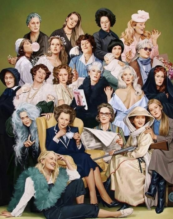 И я имею в виду, конечно же, Мерил Стрип! 22 июня - день рождения этой замечательной актрисы. Завтра ей 76 лет! Фанаты собрали в коллаже лица всех персонажей, сыгранных Мерил Стрип: За свою долгую актерскую карьеру Мэрил Стрип трижды становилась обладательницей премии «Оскар» и 21 раз участвовала в номинации за актёрскую работу — больше, чем у любого другого актёра или актрисы в истории кино. Собрала для вас список фильмов, где актриса номинировалась на Оскара или получила его. Охотник на оленей (1978) номинация «Лучшая женская роль второго плана» Крамер против Крамера (1979) победа «Лучшая женская роль второго плана» Женщина французского лейтенанта (1981) номинация «Лучшая женская роль» Выбор Софи (1982) победа «Лучшая женская роль» Силквуд (1983) номинация «Лучшая женская роль второго плана» Из Африки (1985) номинация «Лучшая женская роль» Чертополох (1987) номинация «Лучшая женская роль» Крик в темноте (1988) номинация «Лучшая женская роль» Открытки с края бездны (1990) номинация «