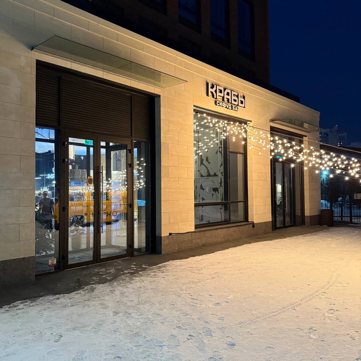 Пицца Камчатский краб, страчателла из меню «КРАБЫ сифуд бар» по 1370 ₽. Давно собирался в это заведение, да всё не случалось — находится оно в начале Красного проспекта, а это совсем не по пути. Интерьер в светлых тонах с интересными светильниками под потолком в виде чаек. Меню поражает своим нарочито незатейливым видом — несколько распечатанных на принтере листов бумаги, удерживаемые вместе самой пошлой и дешёвой скрепкой. Это контрастирует с ценами в меню — морепродукты продукт недешёвый. Да и ожидания это занижает. Но, оказалось все наоборот. В пицце, помимо страчателлы и краба присутствует рукола. Тесто неожиданно прекрасное, кто любит мучное — такое можно есть отдельно. Тесто делают сами, повторюсь, тесто великолепное. Начинка сочная. Сливочность сыра и нежность краба — сочетание беспроигрышное. Плюс того и другого в пицце в достатке. Долго думал, какой напиток взять к пицце. Взял чай асам. Давно не встречал такой вкусный и ароматный чай. Приносят его в металлическом чайнич
