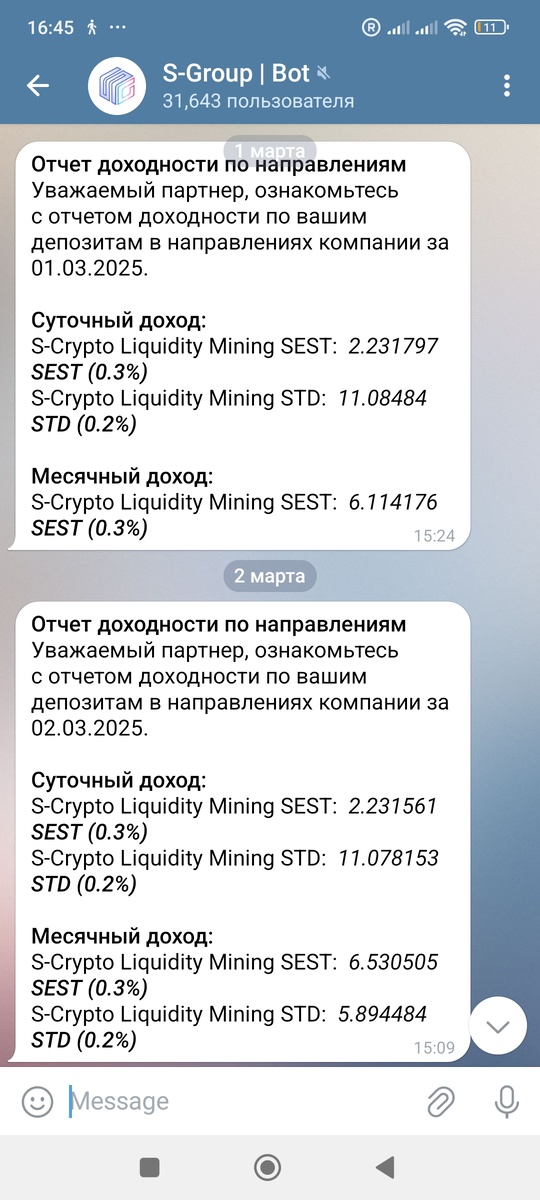01.03: std = 11.08484 (110.85 руб) sest = 2.231797 (276.74 руб) Итого: 378.59 руб 02.03: std = 11.078153 (110.78 руб) sest = 2.231561 (276.71 руб) Итого: 387.50 руб 03.03-04.03: std = 22.157475 (221.57 руб) sest = 4.465442 (553.71 руб) Итого: 775.29 руб 05.03: std = 11.075088 (110.75 руб) sest = 2.232328 (276.81 руб) Итого: 378.56 руб 06.03-07.03: std = 22.16204 (221.62 руб) sest = 4.459789 (553.01 руб) Итого: 774.63 руб 08.03: std = 11.82341 (110.82 руб) sest = 2.230469 (276.58 руб) Итого: 387.40 руб 9.03-11.03: std = 33.228068 (332.28 руб) sest = 6.632189 (822.39 руб) Итого: 1154.67 руб 12.03: std = 11.068107 (110.68 руб) sest = 2.224589 (275.85 руб) Итого: 386.53 руб 13.03: std = 11.095266 (110.95 руб) sest = 2.230642 (276.6 руб) Итого: 387.55 руб 14.03-15.03: std = 22.170921 (221.71 руб) sest = 4.458792 (552.89 руб) Итого: 774.60 руб Итого за 2 недели марта: 6191.90 руб В личный кабинет вышел месячный доход по депозитам: 276 std = 2757.61 руб 28 sest = 3531.15 руб Итого: 62