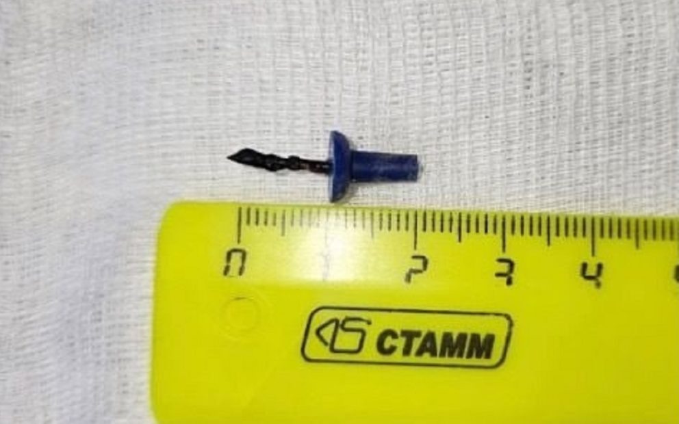 При осмотре врачи детской больницы обнаружили симптомы дыхательной недостаточности I степени. Проведенное КТ грудной клетки подтвердило наличие инородного тела размером 1,5 на 0,5 см. Медики провели девочки бронхоскопию и извлекли канцелярскую кнопку.