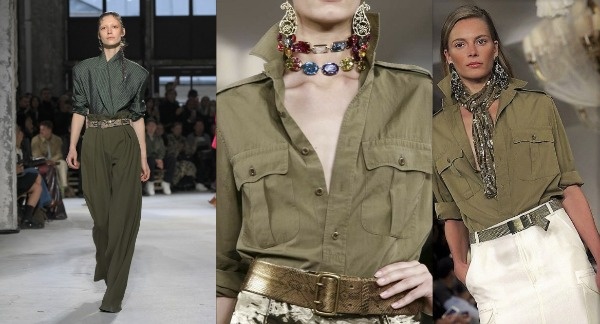 Привет, девочки! Весна в этом году даже у нас в Сибири оказалась стремительная, так что один из главных трендов (съемные меховые воротники) даже поносить не успели... Но все-таки недельку погулять удалось. Я как всегда выбрала любимый и неинтересны серый. Единственный акцент - красная сумка и скучная, серая мышь превращается в стильный образ ) В магазине Glance примерила замшевую куртку и посмотрите, как неплохо она выглядит с воротником) Следующий запрет- страшный, но актуальный в этом году цвет ХАКИ Берем хаки, разбавляем голубой футболкой и рыжими аксессуарами, акцентные, широкие ремни снова актуальны, чему я очень рада) Меняем голубую футболку на красную, рыжий, шелковы шарфик и совсем другой образ. Можно конечно сумку красную, но мне хватило одного акцента. Еще конечно подойдет нежно желтый и белый. В общем вариантов стилизации цвета хаки очень много ) Светлый беж тоже хорошо сочетается с этой юбкой, плюс аксессуары и украшения зеленого цвета и .... нам не страшен зеленый в
