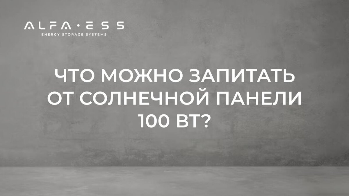В прошлой статье мы рассказывали про большие солнечные станции, но что может работать от солнечной станции мощностью 100 Вт? Солнечная панель 100 Вт — это компактное и эффективное решение для обеспечения энергией в условиях, где нет доступа к централизованной электросети. Однако, чтобы использовать ее потенциал на 100%, потребуется дополнительное оборудование. В этой статье мы расскажем, где применяют маломощные солнечные панели, что еще необходимо для ее работы, и как правильно собрать систему на примере продуктов компании Alfa-ESS. Итак, основные характеристики солнечной панели Alfa-ESS M12-100W: 1. Освещение Солнечная панель Alfa-ESS M12-100W может обеспечить энергией светодиодные лампы, которые потребляют значительно меньше энергии по сравнению с традиционными лампами накаливания. Например: 2. Зарядку мобильных устройств Современные смартфоны, планшеты и ноутбуки потребляют относительно мало энергии: 3. Маломощную бытовую технику От солнечной панели можно запитать устройства с ни
