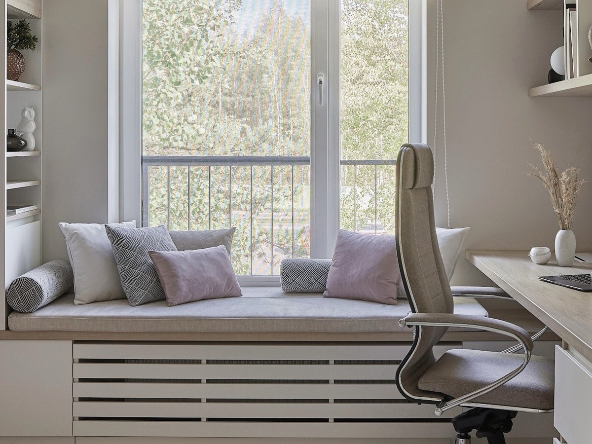 Получилась функциональная зона: теперь здесь можно располагать вещи, работать за ноутбуком или просто любоваться видом из окна. При этом конвекция воздуха не нарушена, а радиатор легко обслуживать благодаря верхней панели с удобной ручкой для открывания.