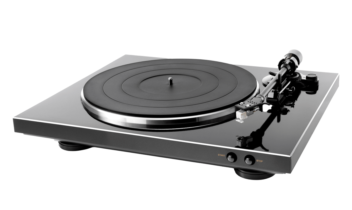 Denon DP-300F полностью автоматический: игла опускается и поднимается без участия пользователя, что снижает износ пластинок и упрощает работу с проигрывателем.