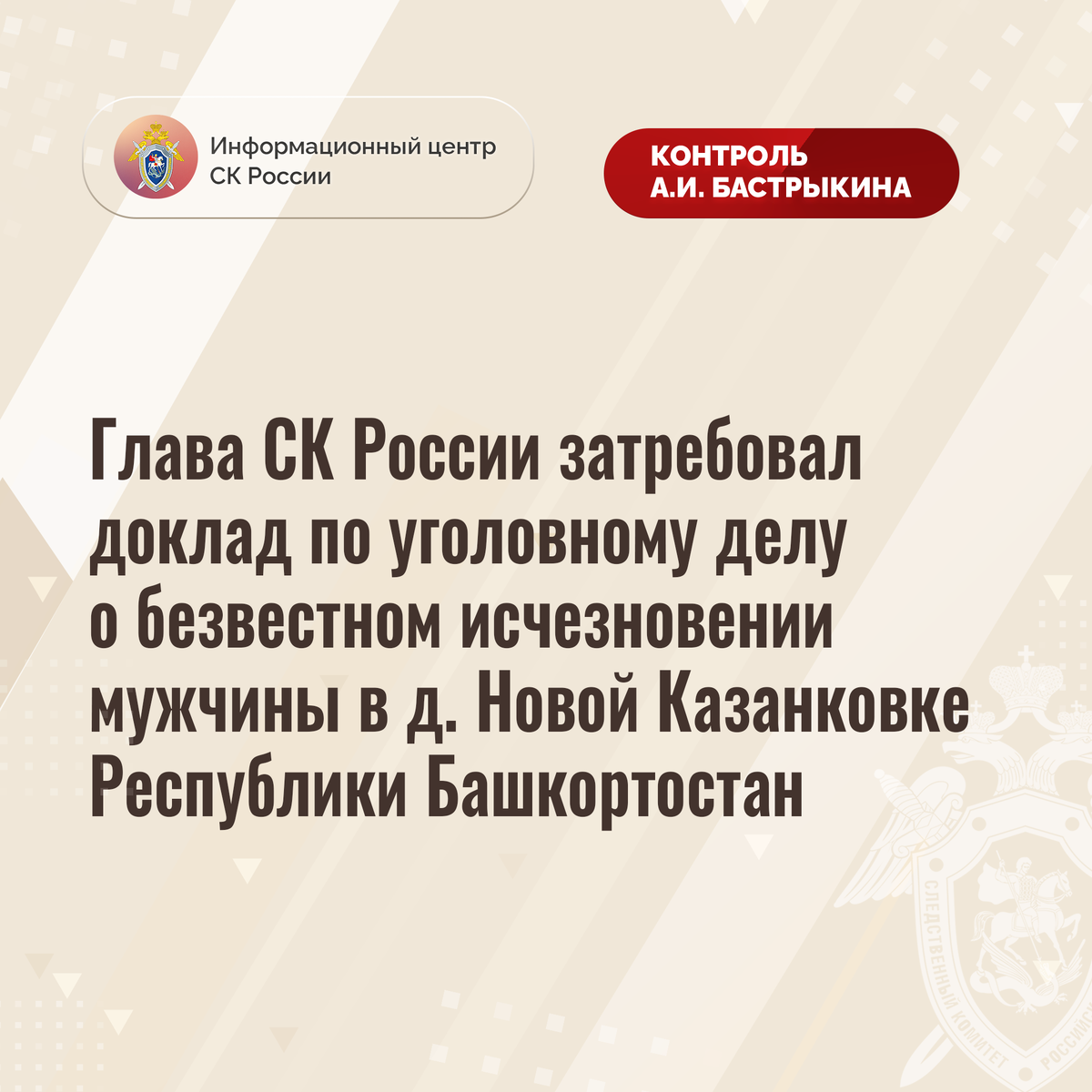 Глава СК России затребовал доклад по уголовному делу о безвестном исчезновении мужчины в д. Новой Казанковке Республики Башкортостан