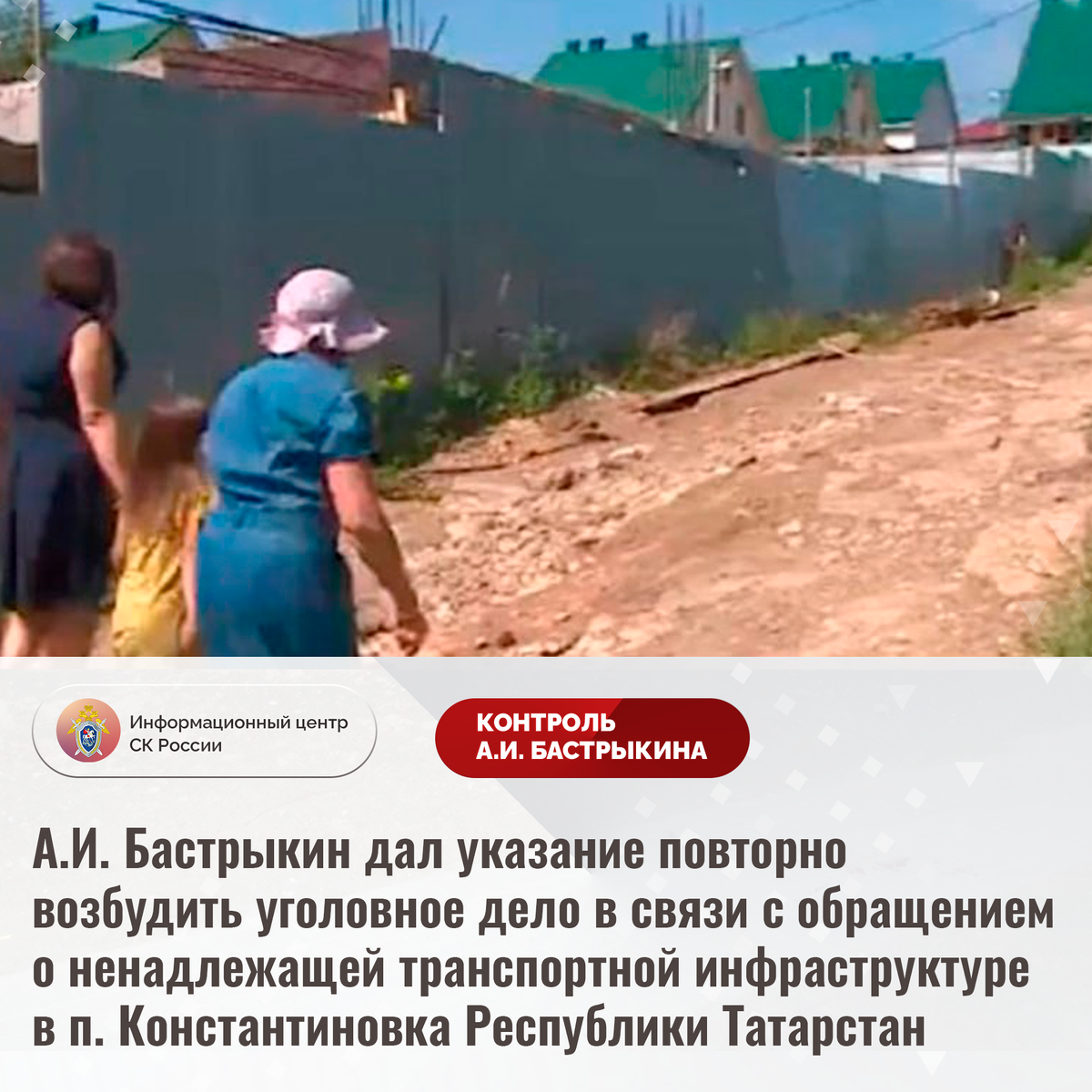 А.И. Бастрыкин дал указание повторно возбудить уголовное дело в связи с обращением о ненадлежащей транспортной инфраструктуре в п. Константиновка Республики Татарстан