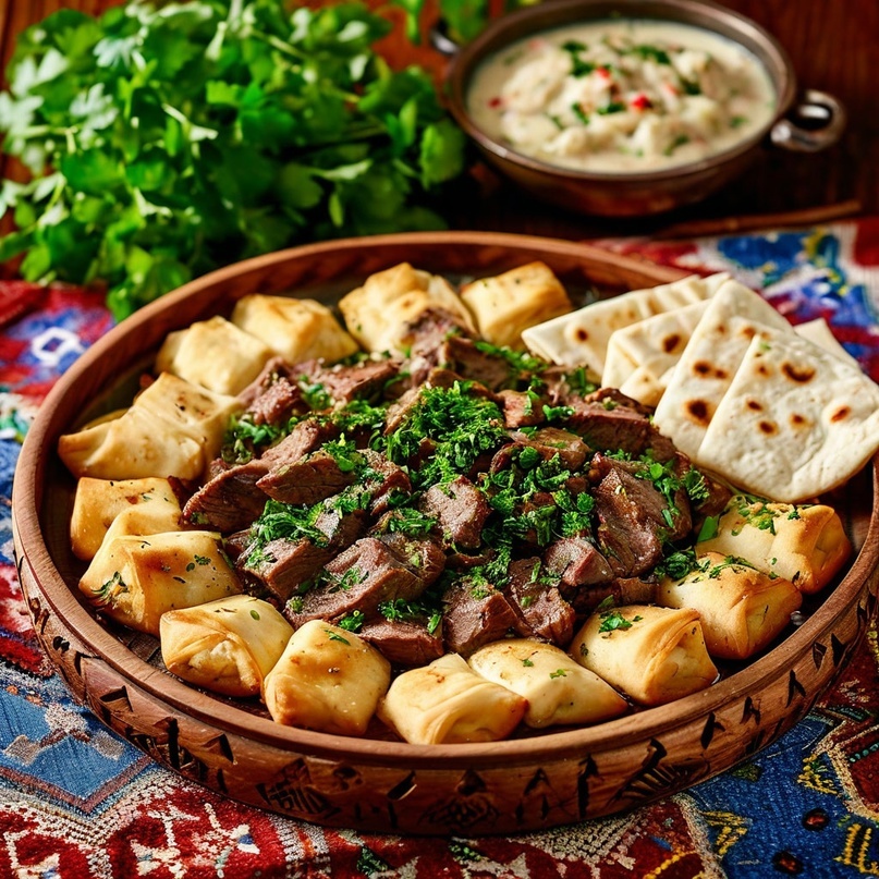 Хинкал — это одно из самых узнаваемых блюд кавказской кухни, которое часто путают с грузинскими хинкали. Однако это самостоятельное блюдо, которое представляет собой ароматные кусочки отварного теста, поданные с наваристым бульоном, мясом и соусами. Его простота, сытность и глубина вкуса сделали хинкал символом гостеприимства народов Дагестана, Чечни и других регионов Северного Кавказа. История происхождения хинкала уходит в традиции горных народов. В условиях суровых гор требовалась пища, которая быстро готовилась, насыщала надолго и не требовала сложных ингредиентов. Основой стали мука и мясо — продукты, доступные даже в самых отдалённых селениях. У каждого народа региона есть своя версия хинкала: Дагестанский — чаще готовится из пшеничной или кукурузной муки, тесто раскатывают тонко и нарезают ромбами. Чеченский (жижиг-хинкал) — тесто делают более плотным, а бульон варят из баранины с добавлением лука и чеснока. Аварский — иногда включает творог в тесто, подаётся с топлёным маслом и