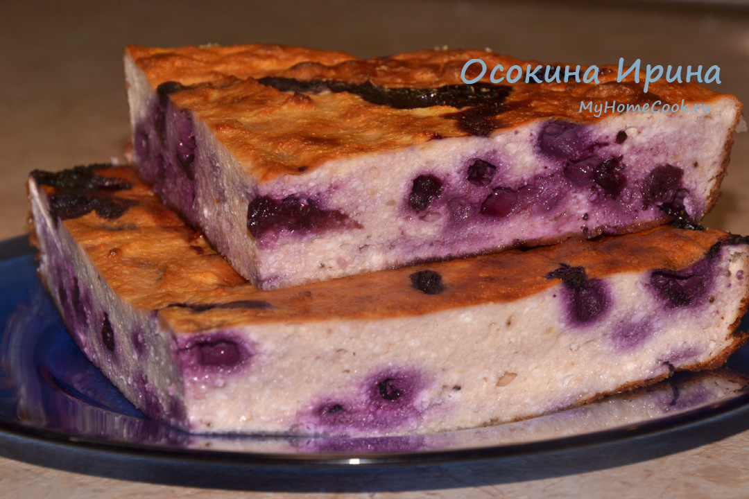 Что-то давно я не готовила творожные запеканки! Сегодня решила исправить это упущение: в колбу блендера вбила 3 яйца, сложила 0,5 кг творога, добавила 2 поломанных банана, 2 ст.л. коричневого сахара и щепотку соли и пробила всё до однородности. в миску сложила 150 г замороженной черники, добавила 1 ч.л. кукурузного крахмала и протрясла, чтобы крахмал обволок все ягодки, добавила подготовленную творожную массу, аккуратно промешала, переложила в смазанную маслом и обсыпанную манкой форму и запекла в духовке, разогретой до 180 градусов, в течение 40 минут, достала, охладила до тёплого и подала. Ооочень вкусно, сочно и нежненько) Приятного аппетита