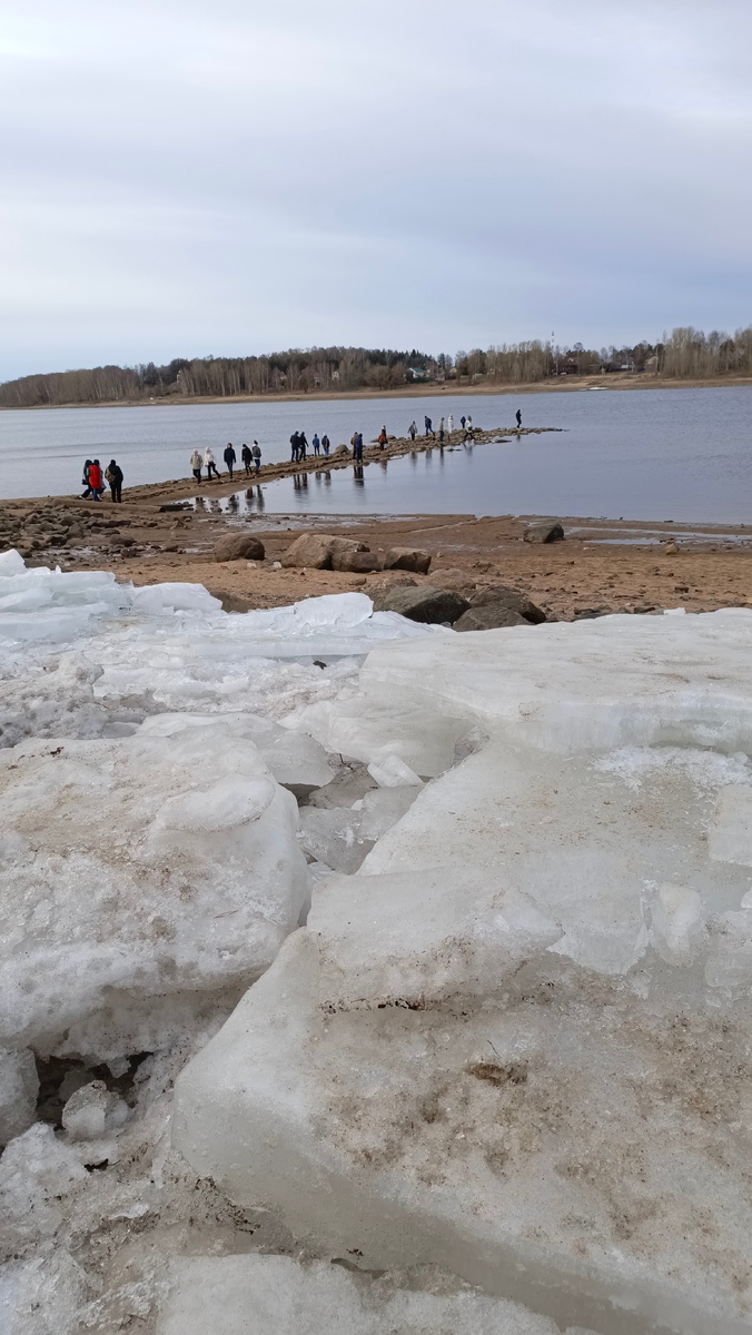 Снега в этом году было мало . Не допросились мы снега у зимы . И вот весна ! А вместо половодья у нас маловодье . Сегодня пошли с подругой прогуляться , я ее потащила смотреть это чудо , которое уже на чьих -то фото узрела . Идем . Болтаем . А мы сверху , чтобы вы понимали , по набережной идём : - Я вниз хочу. Туда. В эпицентр необычности ,- начала я - Ты сапоги-то замшевые светлые специально для этого случая берегла ? Пробил час ? ,- начала сопротивляться подруга ,- там грязища ! -Там красотища !, - вякнула я уже снизу , не дав ей опомниться 🤣,пока она отвернулась на секунду . Лене ничего не оставалось делать , как ползти за мной : - Ну ,началось 🤣🤣🤣,- бубнила Ленка,- то она летом в белой рубашке красивая на камни падает в погоне за уточкой для фото , то теперь грязь месит в сапогах белых. Я не успеваю за тобой следить 🙈 Тут были и глыбы льда , и песок , и вода , и валуны. И вот уже и Лена моя увлечённо держит в руках кусок льда : -Смотри !!!! Как красиво блестит : Бл