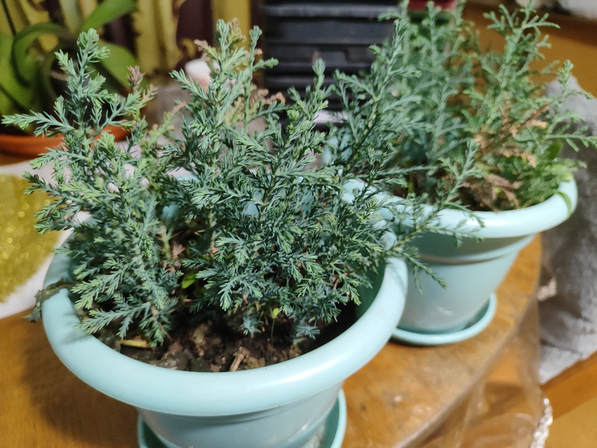 Весь вечер хлопотала с ними. Я же купила грунт для хвойных, но пришлось его мешать с обычным. Не хватило бы чисто хвойного для пересадки. Горшки еще разные, какие были. Хорошо, что эти были! Корни у кипарисов длинные. Большинство по 30 см, но некоторые были даже 40 см! У маленьких были по 20 см, я их сажала по два в горшок, так как тары уже не хватало.