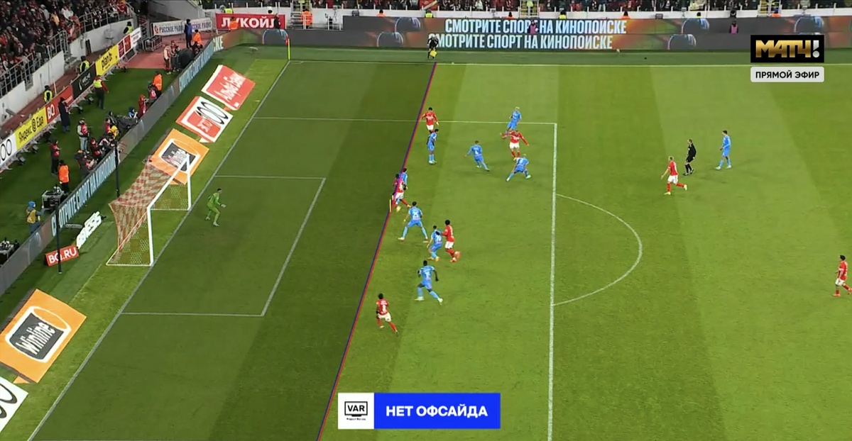 На последних минутах "Спартак" забил победный гол в матче с "Зенитом". ВАР просматривал эпизод на предмет офсайда у Мартинса. После подтверждения гола до конца матча оставалось ещё 5 минут. Но стоп-кадр с линиями так и не был показан. Более того, после матча практически все комментаторы и гости студии, включая проспартаковских, заявили, что по их мнению был именно офсайд. На картинке, которую в итоге показали в программе "После футбола с Черданцевым", между линиями были миллиметры. При этом ракурс этой картинки очень странный. В целом судейство было в большинстве спорных эпизодов в пользу "Спартака". Только в одном можно заподозрить обратное - попадание мяча в руку Эраковича в штрафной. Но такие нарушения по текущим правилам не фиксируются. Конкретный пример - с 60 по 65 минуты "Зенит" дважды мог выходить в контратаку, но Иванов останавливал игру из-за нарушения... на игроке питерцев. Такие вот свистки в пользу провинившихся. В том числе бывший спартаковец Черчесов в программе Черд