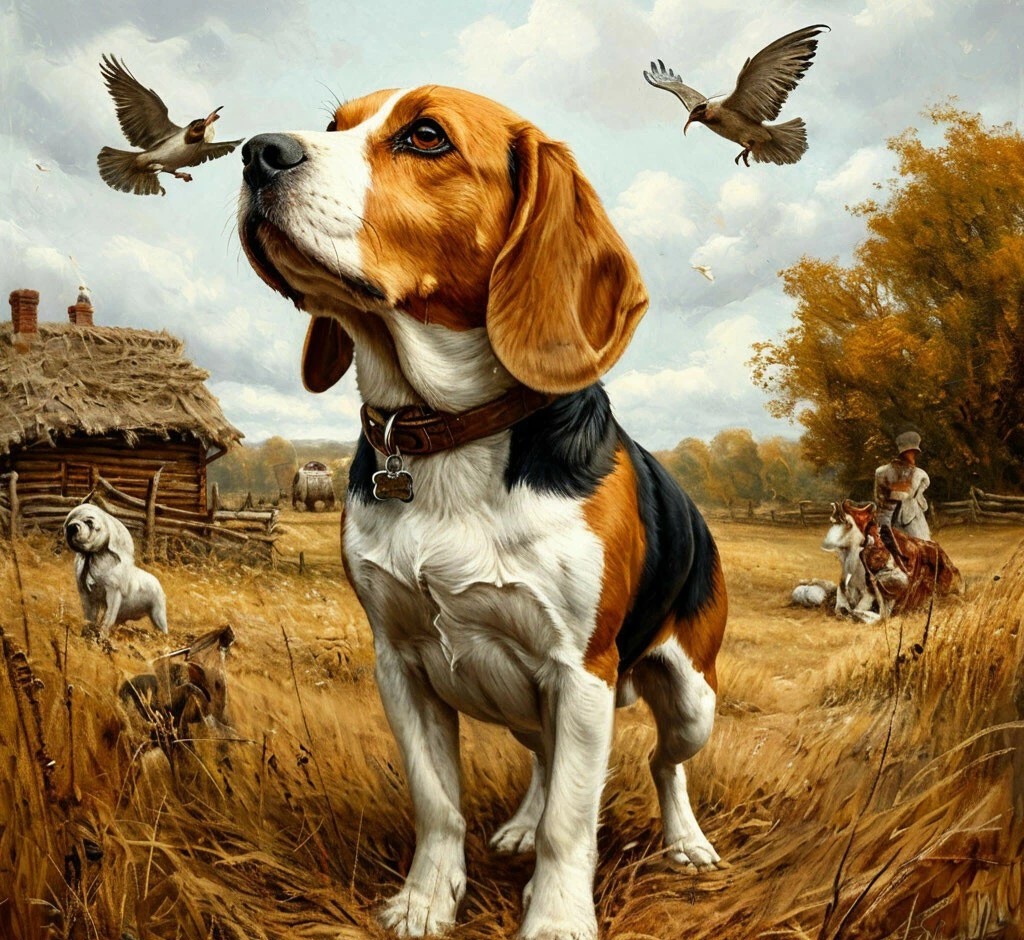 Бигль — это порода собак, которая выделяется своим дружелюбным характером, энергичностью и острым нюхом. Вот основные характеристики и особенности этой породы: Бигли были выведены в Великобритании в XVI веке для охоты на зайцев и кроликов. Они использовались для выслеживания добычи по запаху и преследования её на открытых полях. Название "бигль" предположительно происходит от старофранцузского слова "begueule", что означает "большая глотка", что отражает их громкий голос, используемый для подачи сигналов охотникам. Бигли — это собаки среднего размера с крепким телосложением. У них короткая, плотная шерсть, которая может быть различных окрасов, включая трёхцветный (чёрный, белый и рыжий), двухцветный (например, лимонно-белый) и однотонный. Высота в холке составляет около 33-40 см, а вес варьируется от 9 до 16 кг. Бигли известны своим дружелюбным и игривым характером. Они обожают людей и особенно хорошо ладят с детьми. Эти собаки энергичны и любопытны, что делает их отличными компаньо