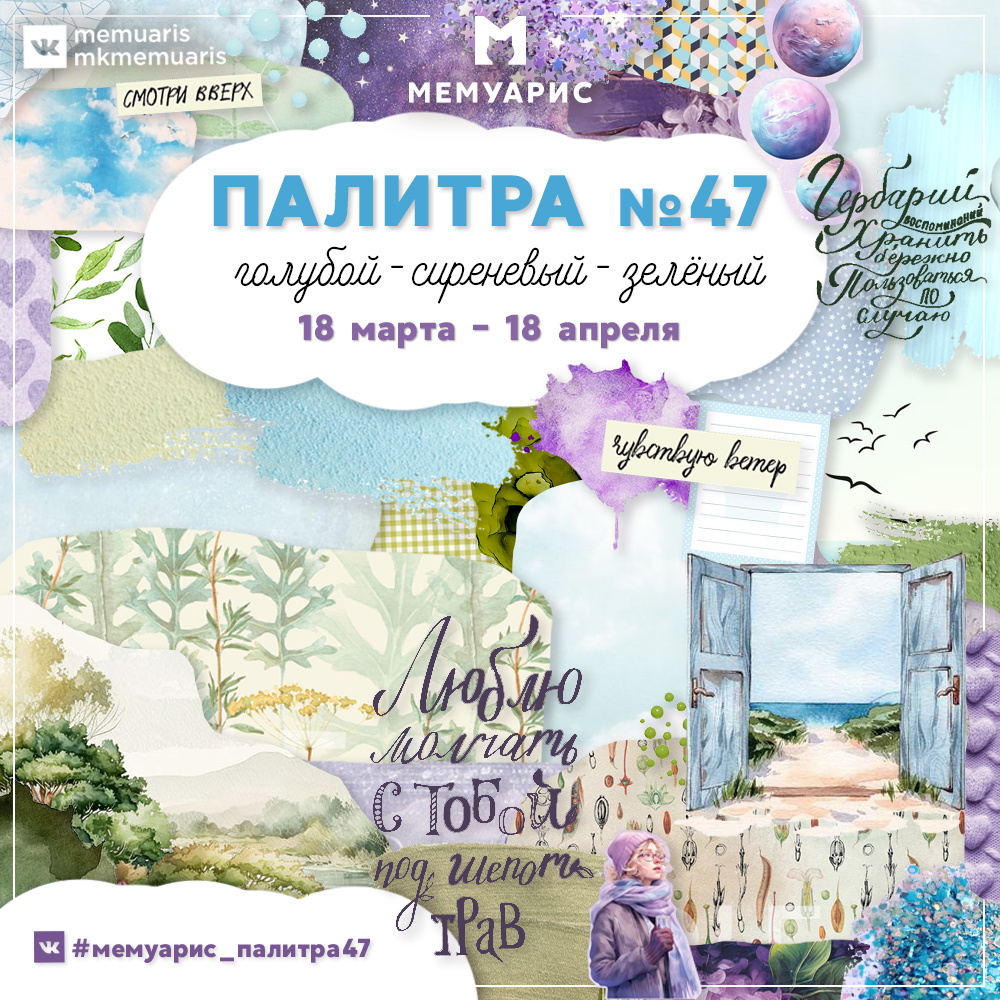 Вы уже чувствуете? Конечно, ведь весну невозможно пропустить. И как приятно понежится в лучах теплого солнца. Уже перед глазами яркие цветы. Давайте вместе насладимся этими чувствами и нашей палитрой. Встречаем? Потрясающие оттенки зелени сочетаются с нежными голубыми и сиреневыми цветами. А сейчас весеннее вдохновение от приглашённого дизайнера: Светлана Абелиович Глядя на палитру, я сразу подумала: «какая нежная весна!» А какая же весна без цветов и первоцветов, без лужиц и ручейков от талого снега, без весенней капели. У нас пока только лужи:))) Поэтому страничку сделала про наши прошлогодние весенние каникулы в Москве, когда гуляя, мы нашли в ГУМе красивую цветочную инсталляцию. Рецепт моей «весны» очень прост: сделала фон с помощью сухой фрактальной краски, добавила штампов, вырубки и негативов. Наша команда тоже спешит вас вдохновить: Наташа Бурминова Всем привет! Не знаю, как у Вас, а для меня дача - это Рай. Где я отдыхаю от всего. И от скрапа в том числе.)) Вдохновившейся наше