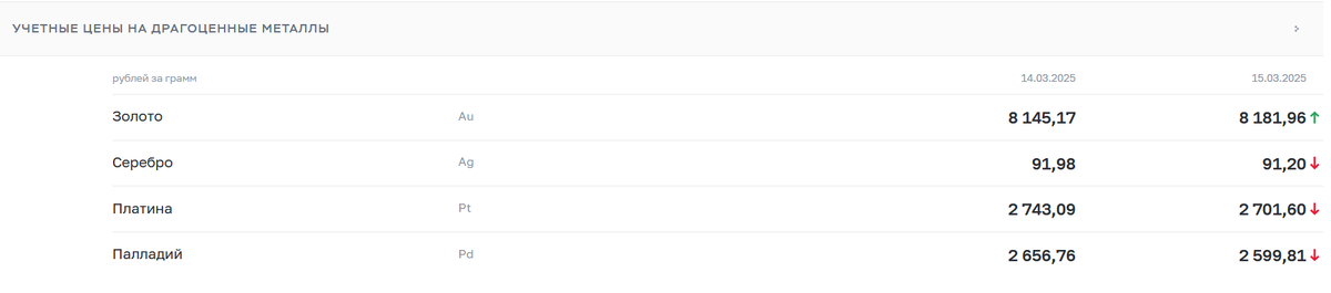 По этим четырем драгоценным металлам Банк России регулярно устанавливает свои учетные цены: