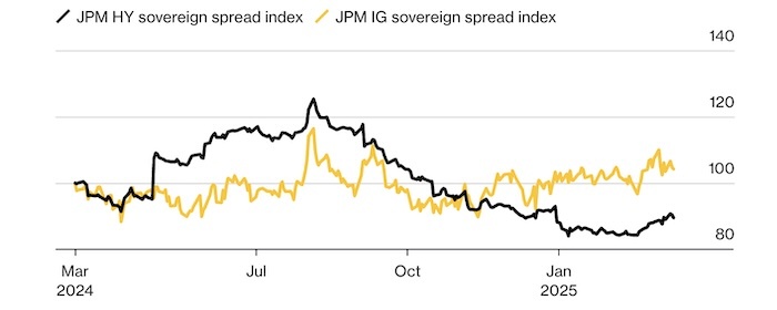 Вся эта турбулентность заставила трейдеров тяготеть к активам-убежищам — золото взлетело, а доходность казначейских облигаций США упала. На развивающихся рынках это вытеснило трейдеров из более рискованных активов в долговые ценные бумаги более высокого качества, которые обычно больше коррелируют с развитыми активами. Возможность повышения рейтинга таких стран, как Марокко, до инвестиционного уровня может привлечь больше денег на рынок, дополнительно поддерживая показатели.