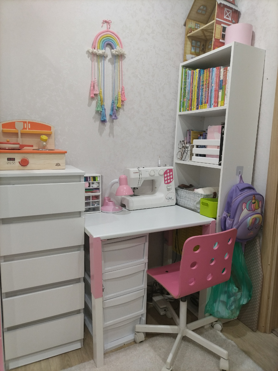 Моим подарком себе любимой на Новый год было рабочее место для рукоделия. Зеленый пакетик не очень смотрится, но зато очень удобно, сразу обрезки и нитки выкидывать. Раньше я много шила, вышивала, рисовала и т.д. Но с увеличение количества детей и уменьшением количества свободного времени постепенно все сошло на нет. Все мои принадлежности для рукоделия переехали на антресоли, швейная машинка на верхнюю полку шкафа, а папку с выкройками и шаблонами я отвезла на дачу. На перед новым годом был период переосмысления и я поняла, что очень хочу снова вернуться к рукоделию. Тем более, что как ни странно время у меня появилось. Раньше большую часть времени отнимала дорога. Отвести детей на занятия, забрать. Сейчас старшие ходят сами, у нас все территориально расположено очень близко. Со следующего года уже сам будет ходить Егор. А с Полей мы вынужденно проводим дома очень много времени. В этот раз из-за герпесов мы опять выпали на три месяца. Начала я с этого журнала, он был моим подарком