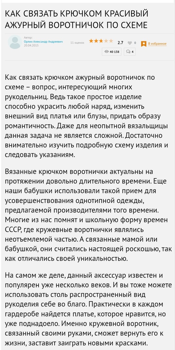 Просто посмотреть почитать.Нашла статью про вязание воротничков на схемы и делюсь с вами. Мне было интересно почитать на надеюсь и вам будет тоже. И ещё есть две схемы. У меня просто очередное увлечение. Я ж не могу вязать одно и тоже. У меня так ,то одно ,то другое. Скоро поделюсь с вами как я вязала ещё один воротничок.На канале есть две части по вязанию воротничка с элементами брюгского вязания. Следующий воротничок чуть проще. Затем свяжем ещё. Пока у меня не прошел азарт вязания воротничков , вяжу. А что дальше? Не знаю ,не знаю. Какое вдохновение и на что меня посетит? Время покажет. Всем удачи и доброго здравия!
