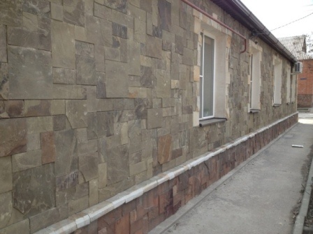 Казачка — это вариант облицовки, при котором плитка пилится только с одной стороны, оставляя острые края. Этот метод позволяет создать 3D-эффект при укладке плитки. Торцевые части камня приклеиваются к фасаду, что придаёт облицовке оригинальный и выразительный вид.