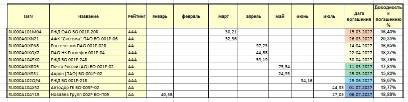 Уже в эту пятницу 21 марта будет заседание ЦБ по ключевой ставке. И чем дольше держится высокая ставка, тем надежнее должны быть эмитенты в портфеле. Сегодня предлагаем подборку из корпоративных облигаций с рейтингом ААА/АА, доходность указана на конец торгов 14.03.2025: Самая высокая доходность у следующих выпусков: 1. АФК "Система" ПАО БО-001P-06, RU000A0JXN21 - 20,31%; 2. Автодор ГК БО-003Р-02, RU000A104XR2 - 19,77%; 3. РЖД БО 001Р-21R, RU000A102QP4- 19,07%; 4. НоваБев Групп 002P БО-П05, RU000A104Y15- 18,89%; 5. РЖД БО 001Р-24R, RU000A104SX0 - 18,79% Не ИИР Подписывайтесь на Telegram канал
